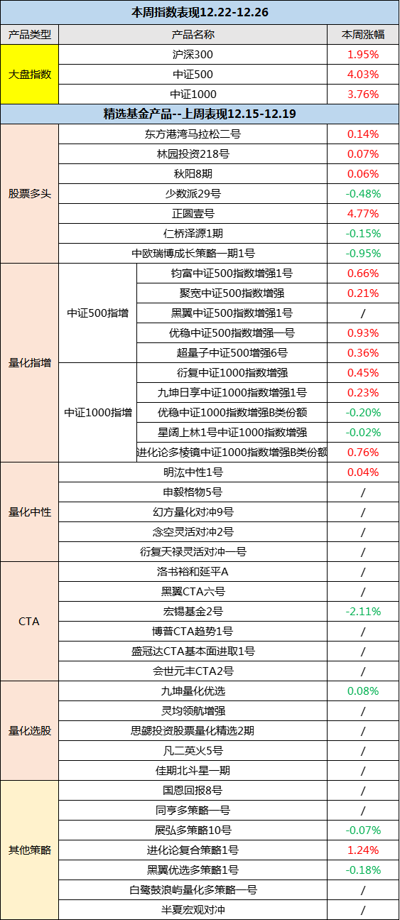 2、国金资管:2026年权益资产或将成配置主战场,债市将维持宽幅震荡。权益量化策略方面,国金资管表示,总体策略深度正不断提升。在市场波动、成交量逐步下行的大背景下,量化策略的超额收益表现,或将印证策略深度已实现新突破,因此该类策略明年仍具备一定配置价值。不过在配置结构上,需重点关注两点:一是在策略周期上适度分散;二是结合需求精准选择具体产品策略。债市展望方面,国金资管认为,2026年积极财政政策或持续发力,通胀预期有望逐步升温,叠加机构行为扰动加剧,债市利率下行空间或受到限制。但与此同时,央行大概率将维持流动性宽松以配合财政政策落地,政策工具箱仍有发力空间。综合来看,2026年债市收益率或将继续维持宽幅震荡行情。